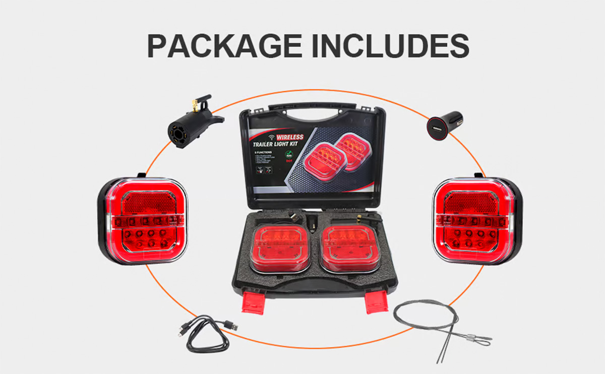 These Wireless Tow Lights Use A Strong 2.4ghz Signal With A Range Of Over 100 Feet, Making Them Perfect For Long Trailers, Trucks, And Suvs. With The Universal 7-Pin Round To 4-Pin Flat Connector, Setup Is Quick And Hassle-Free. Just Plug In The Transmitter, Mount The Lights, And You’re Good To Go.